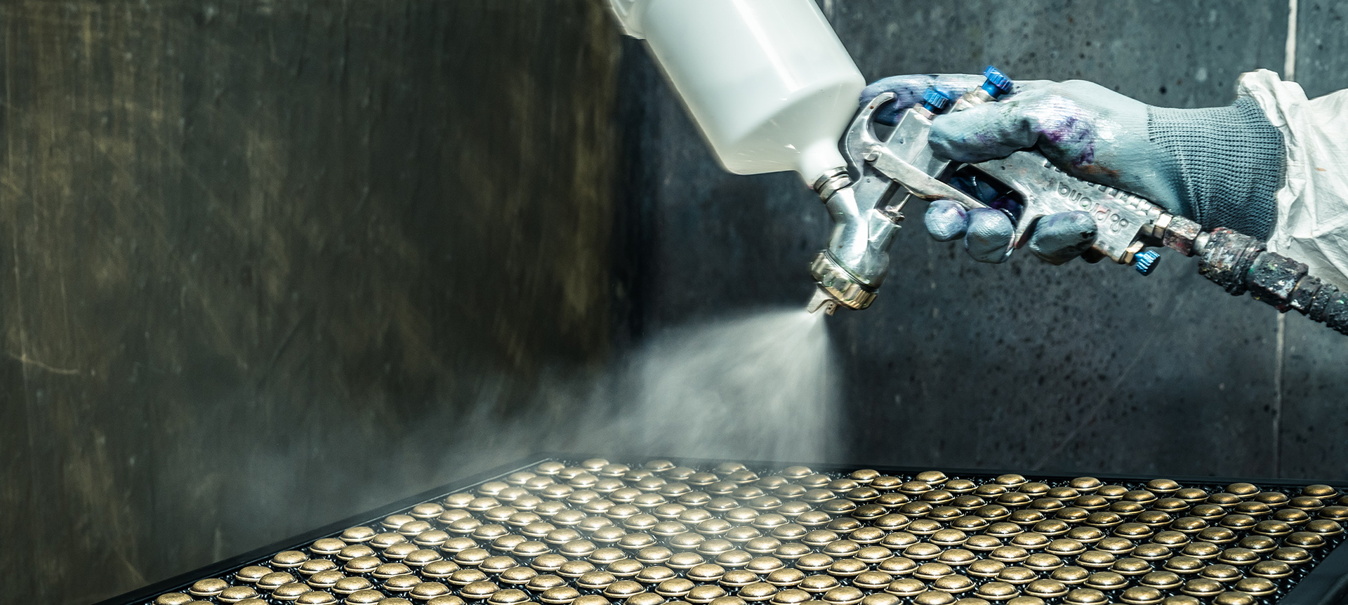 Prima della verniciatura gli articoli vengono posizionati dai nostri addetti su appositi telai
